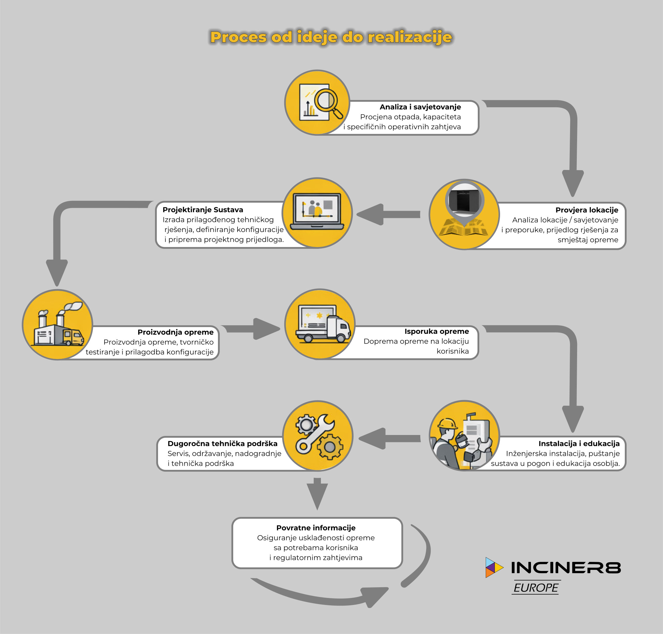 Kao regionalni predstavnik, Inciner8 Europe osigurava lokalnu stručnost, tehničku podršku i prilagodbu rješenja specifičnim regulatornim i operativnim zahtjevima europskog tržišta. Naša inovativnost dodatno je prepoznata i podržana od strane HAMAG-BICRO", koji je sudjelovao u razvoju i patentiranju jedinstvenog rješenja za utilizaciju otpadne topline, čime dodatno potvrđujemo svoju usmjerenost na tehnološki napredna i održiva rješenja.