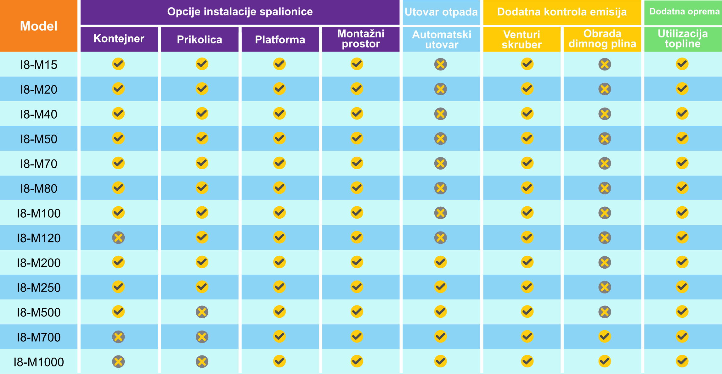 U nastavku je prikazan pregled dostupnih modela, koji se mogu konfigurirati prema specifičnim zahtjevima pojedine primjene: